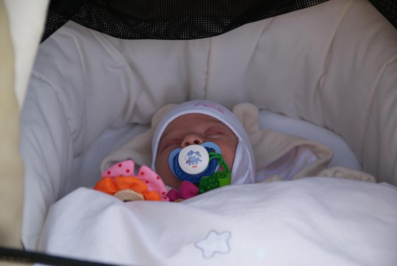 Julia hat die Zeit schön im Kinderwagen schlafend genossen. Aber nicht ohne ab und zu doch ein Auge zu riskieren. Während Mare erst mal das Gras erkunden und mit ihrem Papa Christoph toben musste. Wenn in ein paar Wochen Julia dann auch auf einer Kuscheldecke das Wetter genießen kann, wird’s auch für sie dann interessanter.